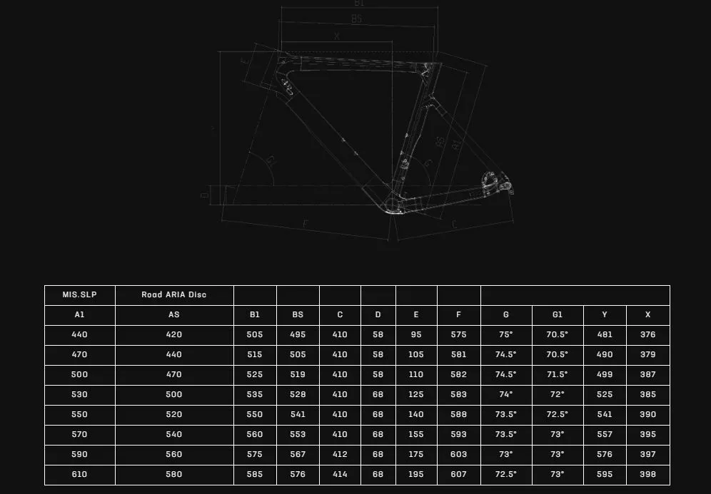 - Frame: Aria Disc carbon, geschikt voor mechanisch/elektronisch schakelen, PressFit 86,5x41mm BB, balhoofdbuis 1.1/4″-1.1/8″, geïntegreerde zadelklem, carbon dropouts, flat mount, steekas 12x142mm