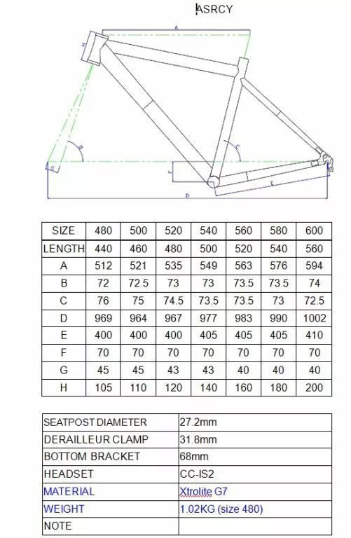 Slechts 1100 gram weegt dit frame zonder vork. Uitzonderlijk goede stijfheidswaarden worden verkregen door de speciale legering.