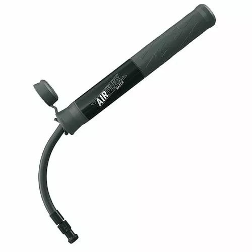 De Airflex Racer minipomp maakt pompen nog gemakkelijker. Het geheim zit onder de gripvaste stofkap: in de pompbuis zit een lange slang verborgen die je eruit kunt trekken en luchtdicht op een SV ventiel kunt schroeven. Je kunt ermee pompen tot maximaal 8 bar.