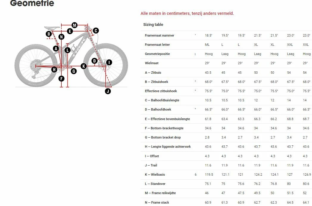 - Buitenband: Maxxis Rekon EXO, wire bead, 60 tpi, 29×2.60″ of Bontrager XR4 Comp, stalen hieldraad, 30 tpi, 29×2.60″