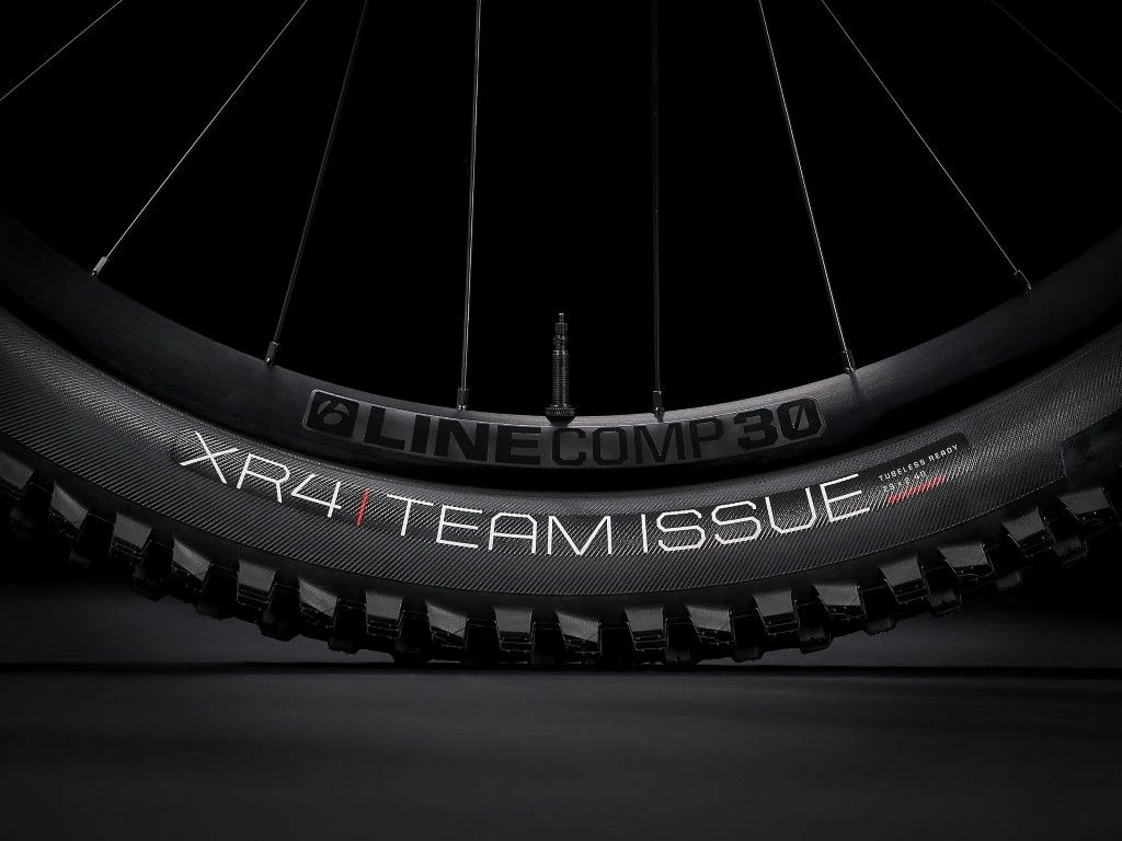 - Buitenband: Bontrager XR4 Team Issue, Tubeless Ready, Inner Strength zijwanden, aramide hieldraad, 120 tpi, 29 x 2.40”
